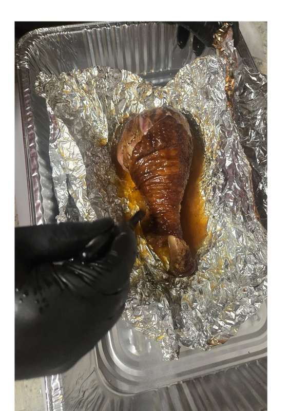 Our fall-off-the-bone turkey leg is slow-cooked and seasoned to perfection, so tender you barely need a fork. Each bite is juicy, smoky, and packed with rich flavor that sinks in deep. The meat pulls away effortlessly, delivering that melt-in-your-mouth goodness everyone loves. It’s hearty, satisfying, and guaranteed to make you feel like you’re eating at a true Southern cookout pure, delicious perfection.
